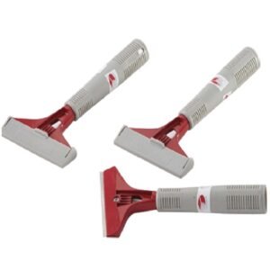 Used to scrape paint and stickers from glass tile etc. Uses a standard single-edge razor blade. Uses standard razor blades.” The Mini Glass Scraper is the ideal tool for cleaning glass, tile and flooring. It features a razor sharp replaceable blade and is portable and lightweight.
