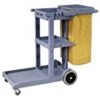 Trolley provides multiple storage options to use as a mobile cleaning trolley in various environments. The trolley features two small front castors and two larger back wheels to provide maximum control over mobility for the user. The trolley incorporates a top storage tray with two further storage shelves for larger items. Built into the frame, at the rear of the trolley is a bag holder with the included vinyl bag.
