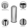 Push bins are used for dry/wet waste of offices & homes. As the name conveys push bin because of its push lid, as when you push its lid to throw the garbage it’ll get back to its normal position and close the bin automatically. This feature is given, so as to avoid mosquitoes to enter and roam into it. You can also remove its push cap and it’ll be ready to use it as an open bin. It can be used with or without standard garbage bags. It is generally used in offices & homes, as People often use it for Common rooms, bathrooms, bedrooms, SOHO, under the desk &, etc; It is made of 100% Stainless Steel which makes it highly durable and resistance to corrosion.